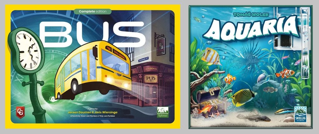 Da die anderen Brettseggel wieder Ausflüchte haben und durch Abwesenheit glänzen, holt sich Pete mal einen Profi in die Runde: Christian von Spielstil! Im süddeutschen Duett diskutieren die beiden das Golden GameBus – und ob der klappert oder läuft und läuft und läuft. Und dann tauchen die beiden mit Schwung ins Aquaria – um zu sehen, ob die Fische fleißig beißen oder kränkeln…